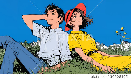 イラストの中でスマホを持つ女の子たちは、