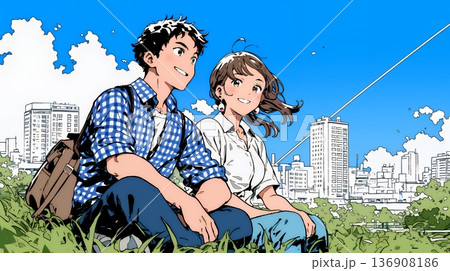 仲良く二人で旅行の計画を立てている若いカップル