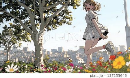 幸せそうなカップル:散歩中(シンプルな色使い)